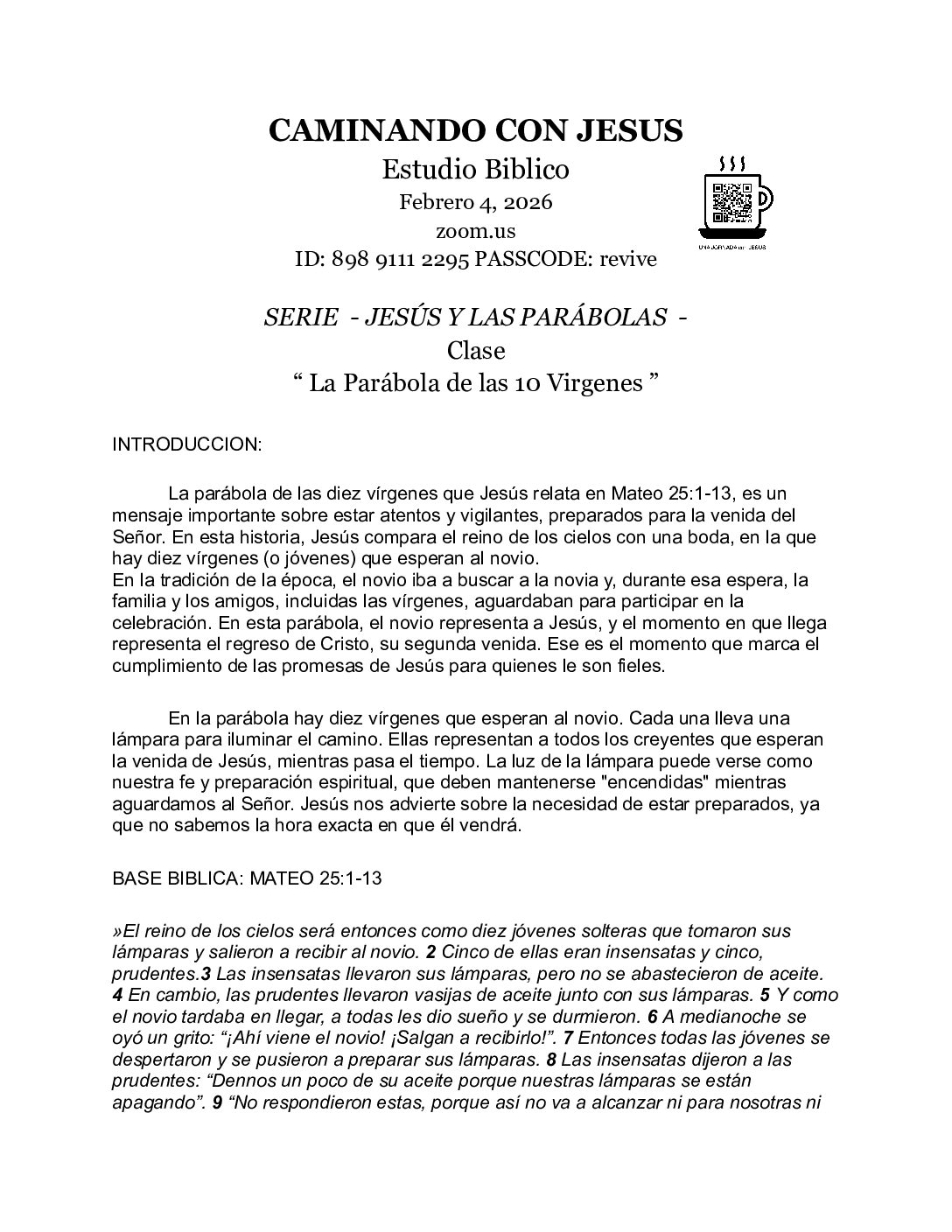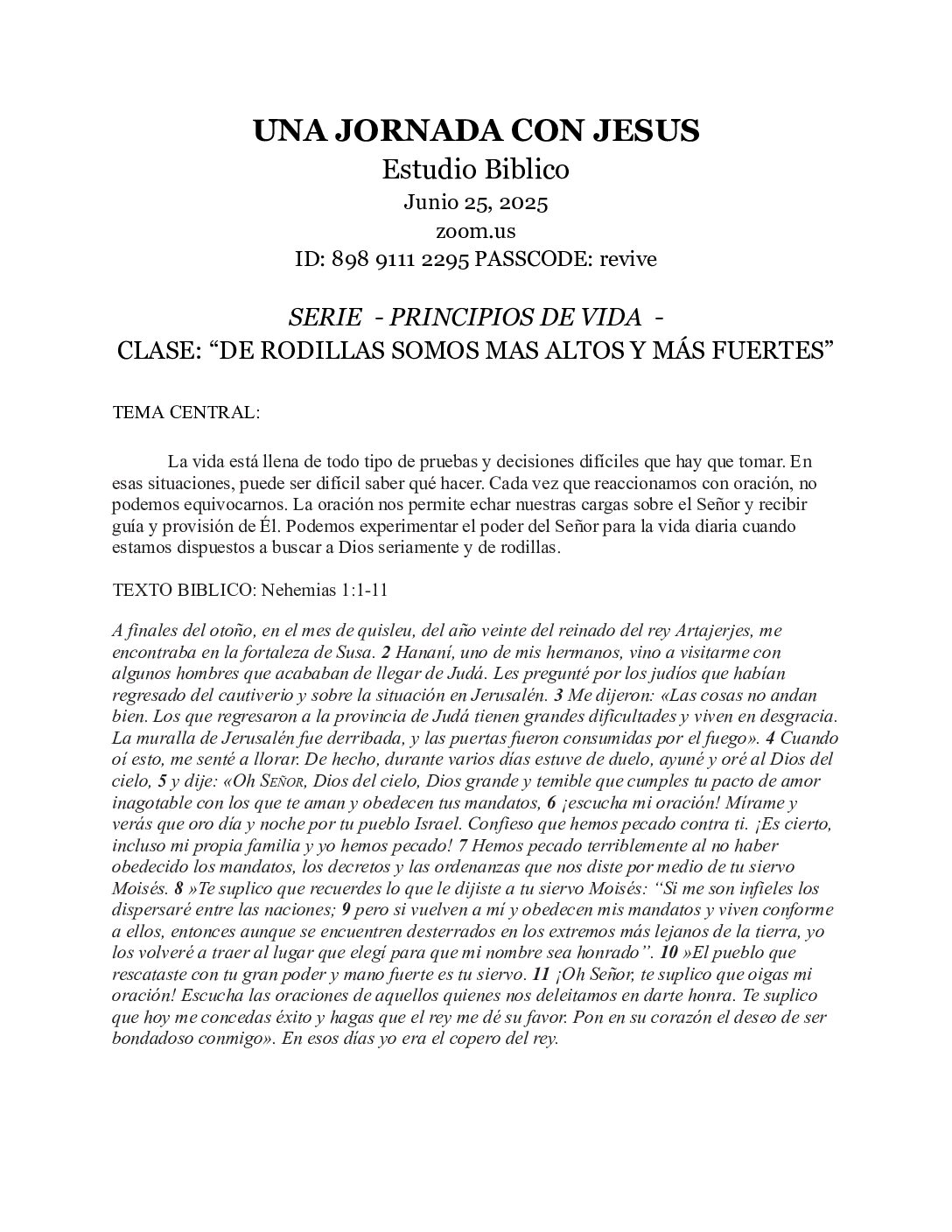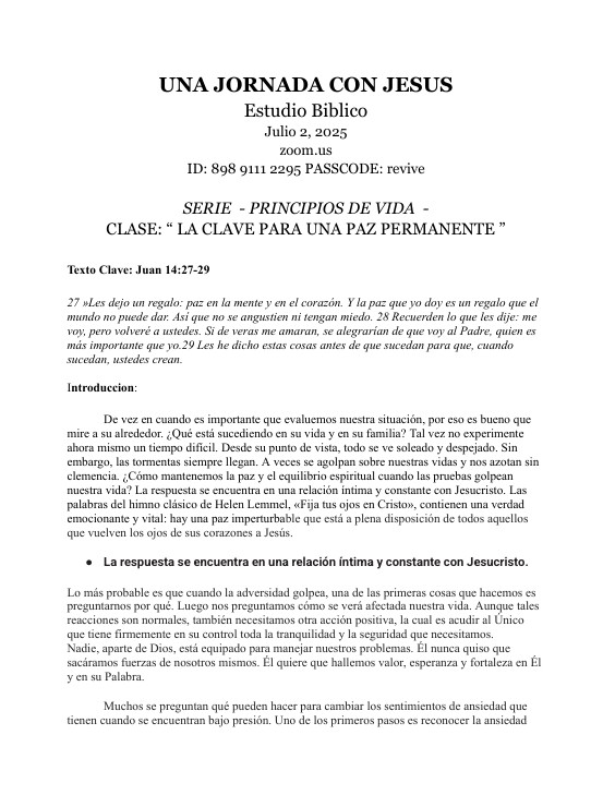 En Revive creemos que la instrucción de la Palabra de Dios nos lleva a vivir una vida espiritualmente exitosa es por eso que te invitamos a ser parte de nuestros estudios bíblicos cada miércoles. En esta sección puedes descargar los materiales que utilizaremos en cada sesión.